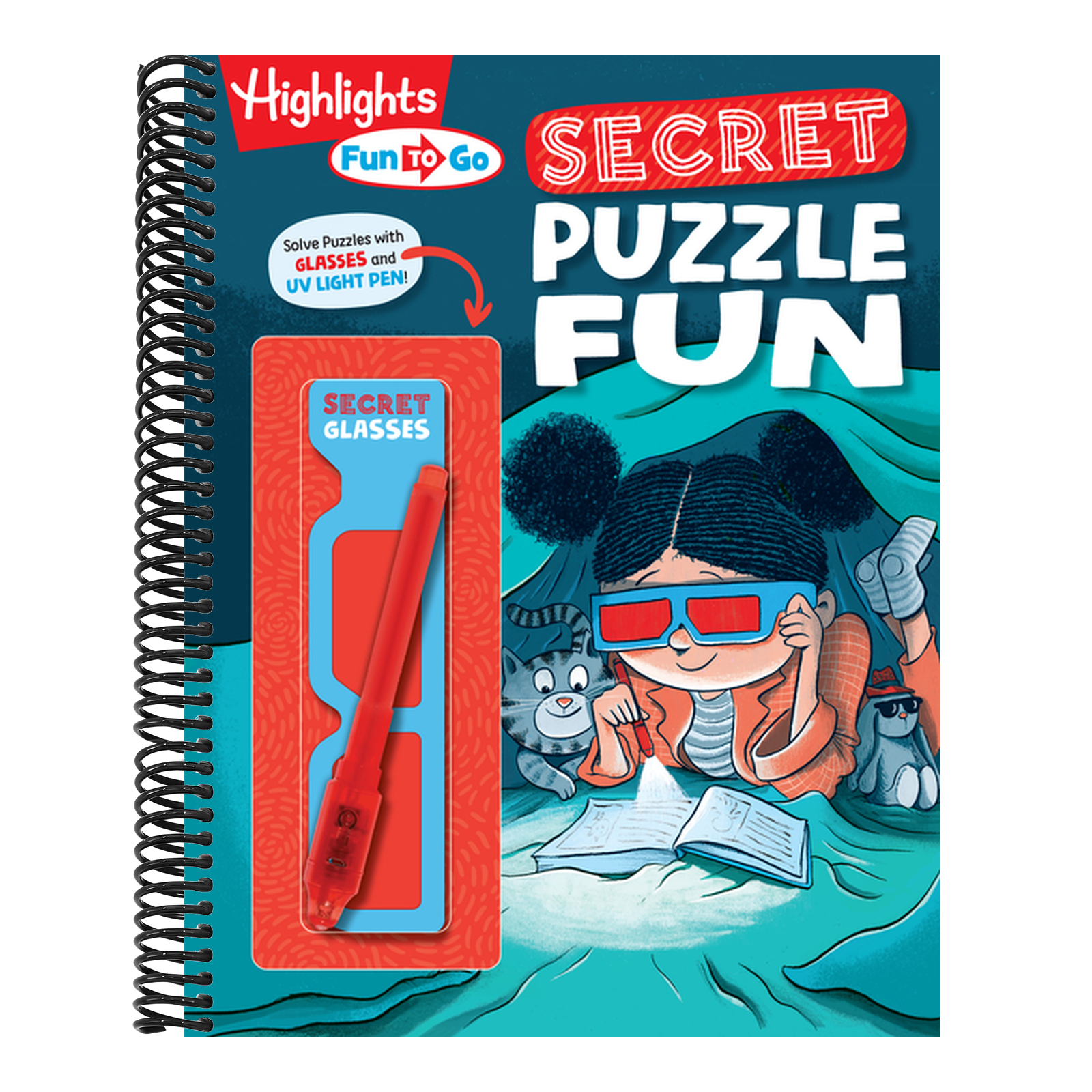 Biographical Note: Publisher Marketing: Pssst...puzzle fans will love this unique collection of secret codes, invisible ink puzzles and more! Secret Puzzle Fun is packed with more than 28 puzzles and games, including Hidden Pictures puzzles, codes puzzles, mazes, criss crosses and riddles. It comes with red decoder glasses and a UV light invisible ink pen that makes solving puzzles even more exciting for kids ages 6 and up. Filled with secret codes and invisible ink, this activity collection offers a fun twist on classic puzzles. Kids can wear the red decoder glasses to spot hidden objects and use the UV light pen to detect invisible ink. The variety of activities will keep puzzlers engaged screen-free for hours, with an easily portable format that's perfect for popping in a bag or backpack to take fun on the go! These secret puzzles aren't just entertaining -- they help kids improve visual perception and concentration skills. Like all Highlights puzzle books, Secret Puzzle Fun also helps kids improve attention to detail, supports good work habits and builds self-confidence through play. For over 75 years, Highlights has inspired children to become Curious, Creative, Caring and Confident individuals. With products that encourage thinking, creativity and self-expression, Highlights helps kids build essential skills, all while having fun. |